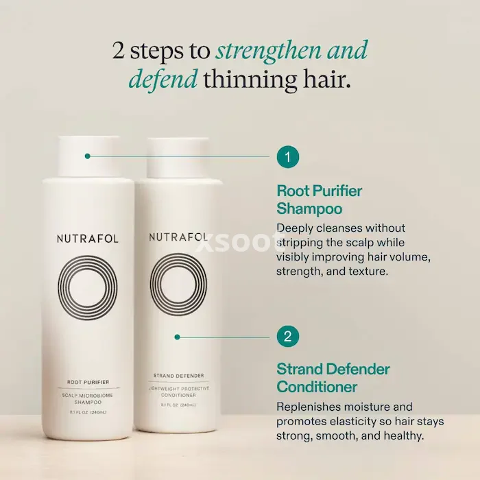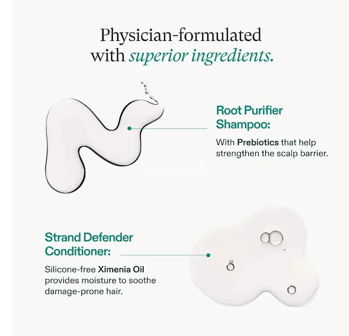 A physician-formulated shampoo and conditioner duo for thinning hair that thoroughly cleanses and strengthens while visibly reducing hair damage. (1)