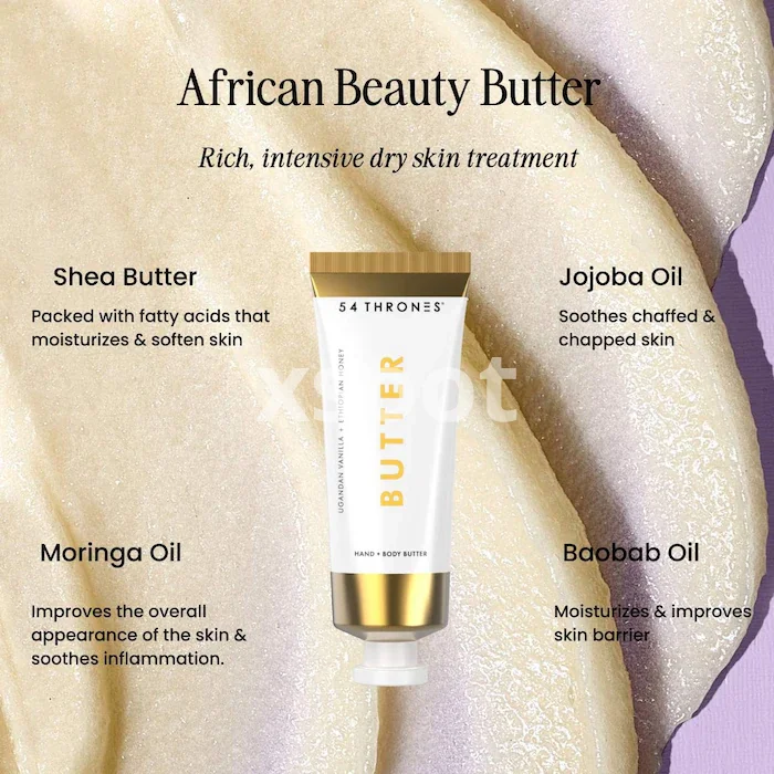 - Shea Butter: Packed with fatty acids that moisturize and soften skin.