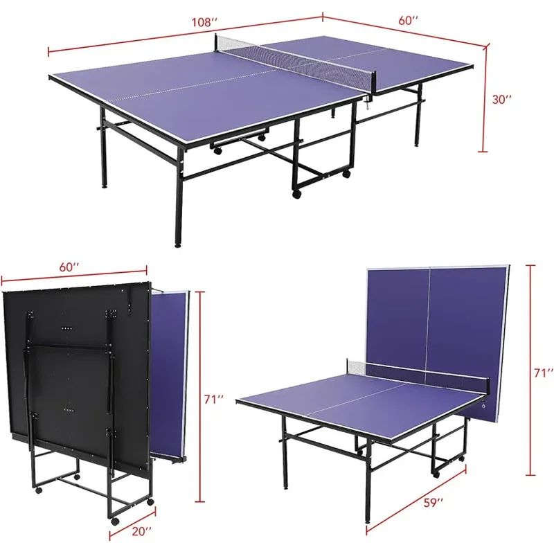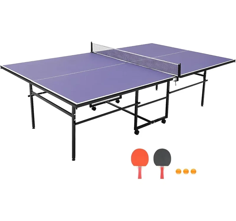 This professional ping pong table features 12MM MDF surface and heavy-duty aluminum frame. Available in 8FT/9FT sizes with foldable design and playback mode. Includes net, 2 paddles, and 3 balls. Easy assembly with wheels for mobility. Perfect for indoor/outdoor use in homes, offices, and recreation centers.