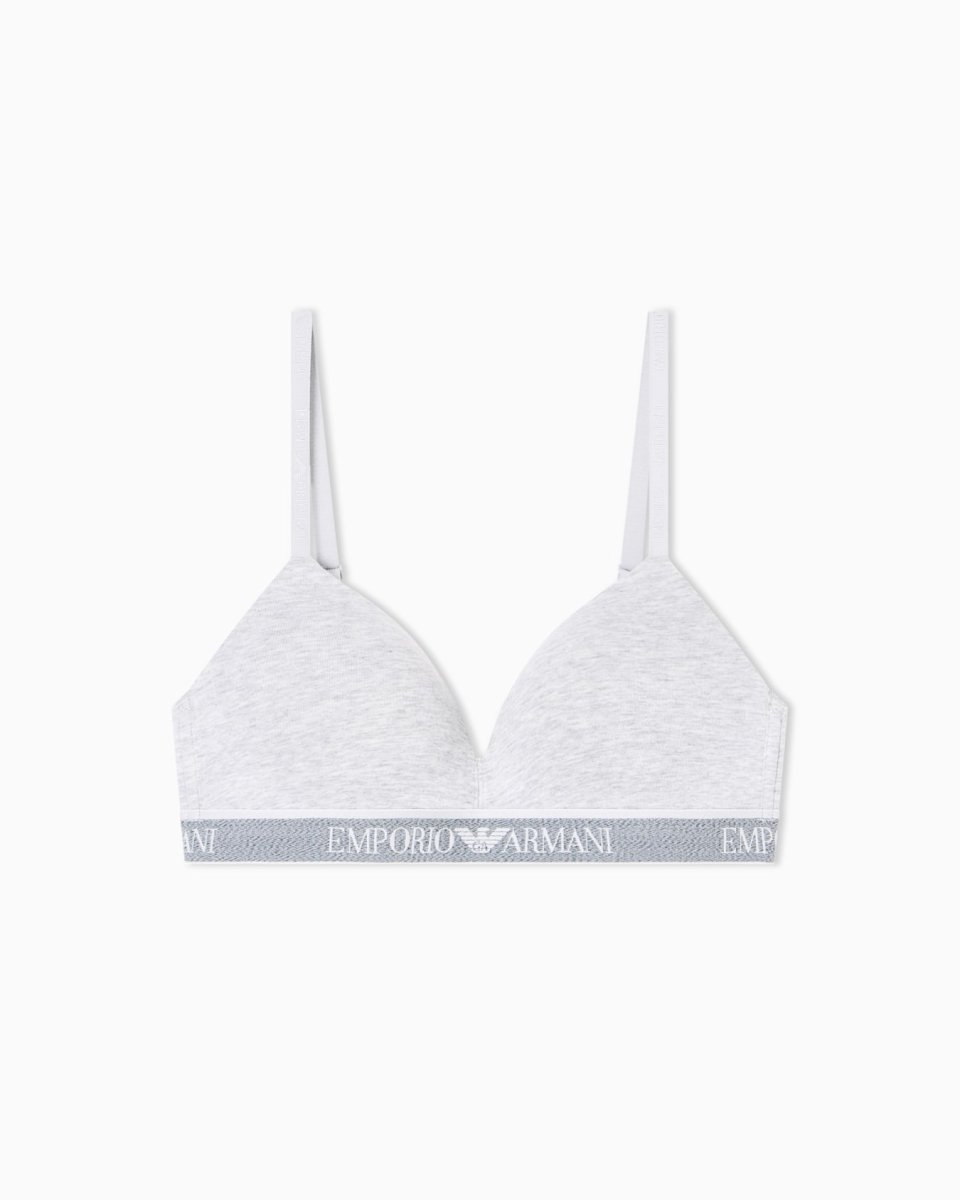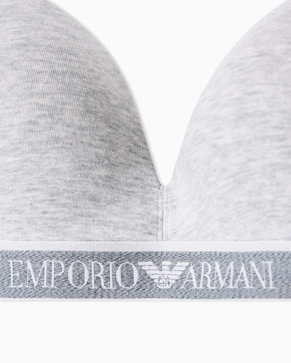 Triangle bra with adjustable shoulder straps and elasticated logo trim. The fabric is an organic cotton made from organically grown fibres.