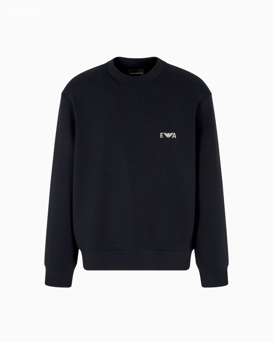 Cotton-blend jersey crew-neck sweatshirt. The contrasting super-embossed, embroidered EA logo completes and distinguishes the garment. Composition Fabric: 76% cotton, 18% polyester, 6% elastane Details JerseyCrew neckLogo embroideryLong sleevesRib-knit c...