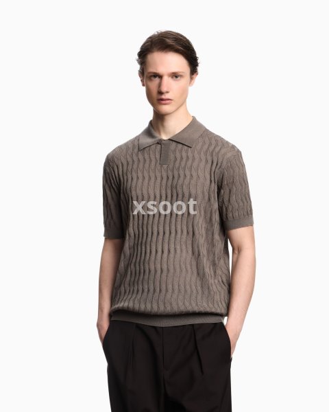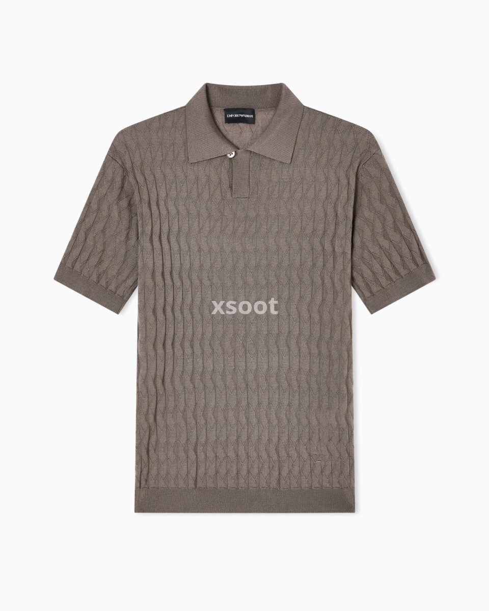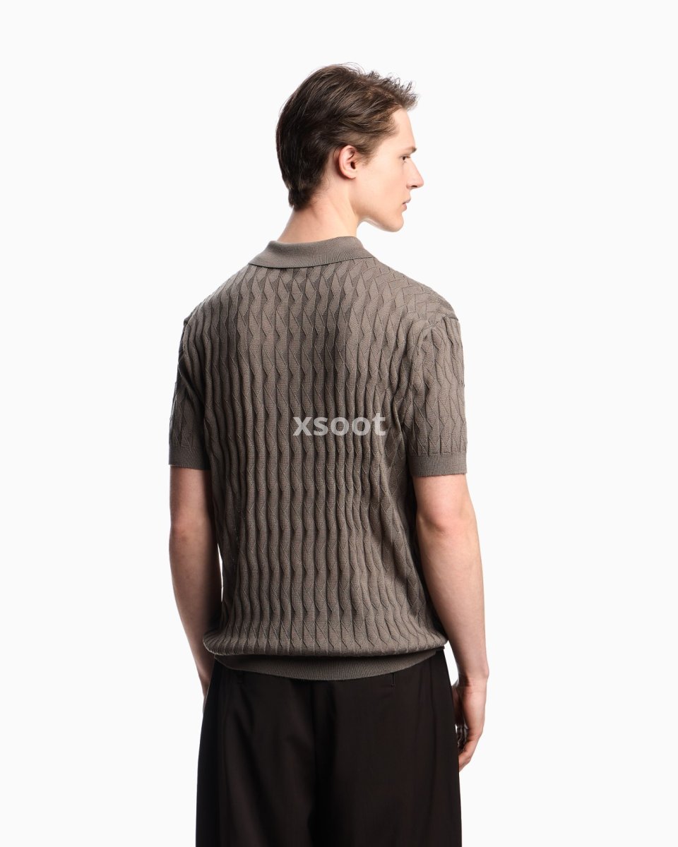 Jumper with polo-shirt collar, made from a Lyocell blend. Lyocell is a semi-synthetic fibre that has an exceptionally low impact on the environment. It is derived from eucalyptus trees and is renowned for being very durable, breathable, absorbent and wrinkle-proof. The particularly lightweight patterned knit showcases an exclusive embossed motif.