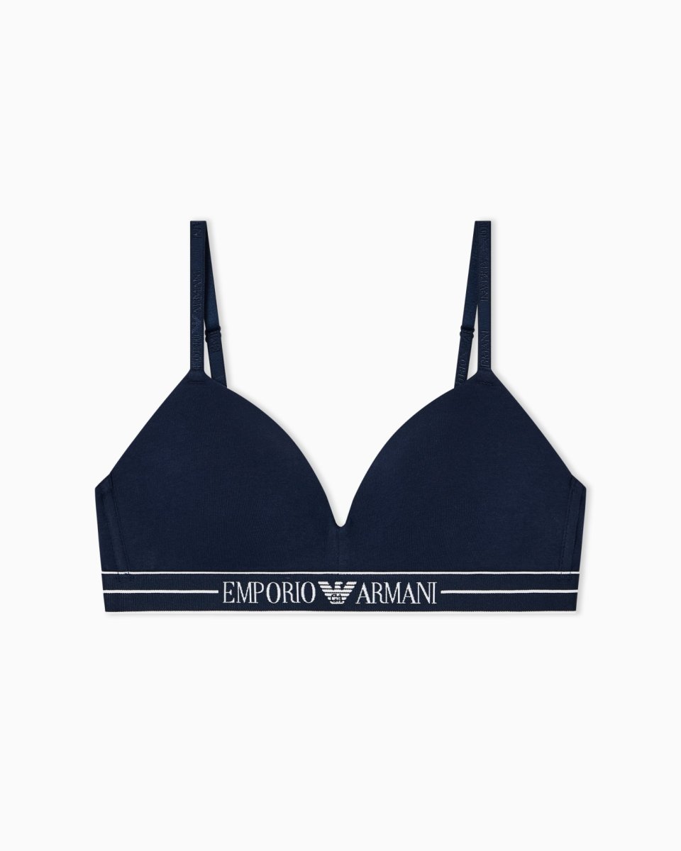 Padded triangle bra with adjustable shoulder straps and logo elastic. The fabric is an organic cotton made from organically grown fibres. Composition Fabric: 95% cotton, 5% elastaneShoulder elastic: 80% polyamide, 20% elastaneElastic under bust: 92% polyester, 8% ...