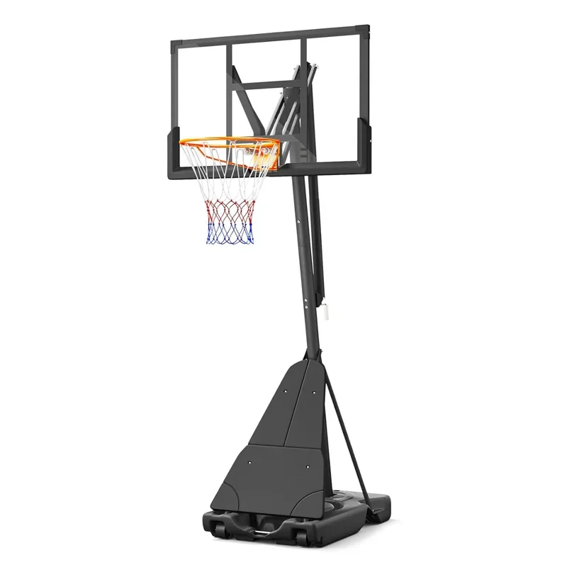 Experience endless fun at home with our portable basketball hoop! Whether you're cultivating a passion, bonding with your family, or hosting a competitive game, this basketball hoop is perfect for you. Its durable construction and sleek design is built to withstand long-term use. With multiple adjustable heights ranging from 5.25 feet to 10 feet, this basketball hoop is suitable for beginners and experienced players alike, ensuring that every shot is a thrill. The base holds up to 132 pounds of water or sand for rock-solid stability, and with convenient built-in wheels, moving around is a breeze. From driveways to backyards and beyond, turn any space into your court and let the games begin!