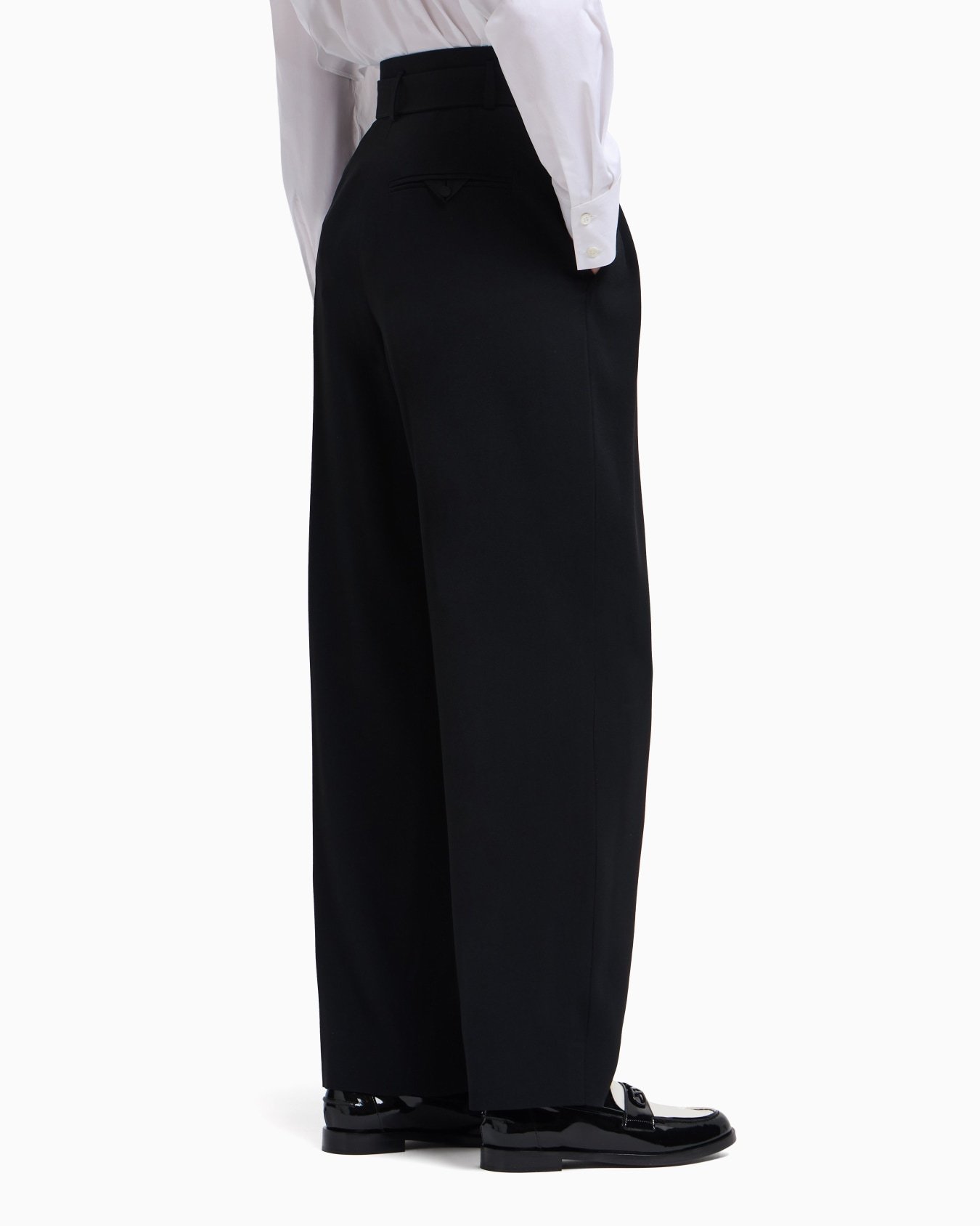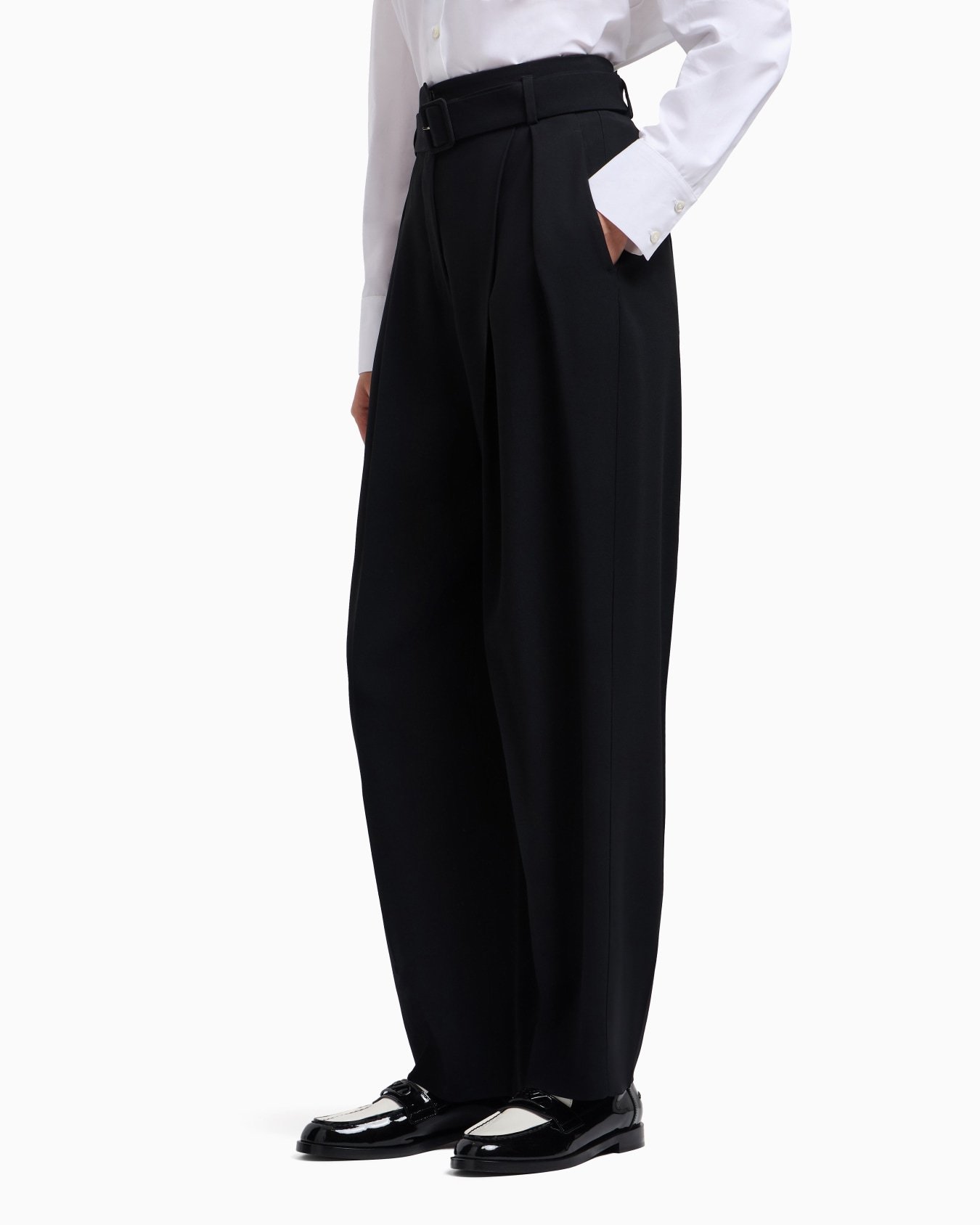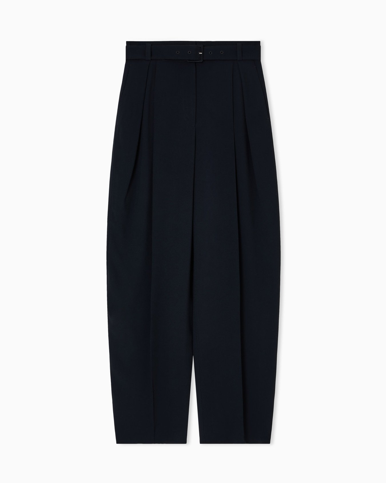 Trousers with matching belt and buckle, made of envers satin, a fluid fabric that gently glides over the figure. The relaxed design has deep front pleats and adds a casual finishing touch to everyday looks.