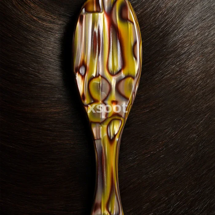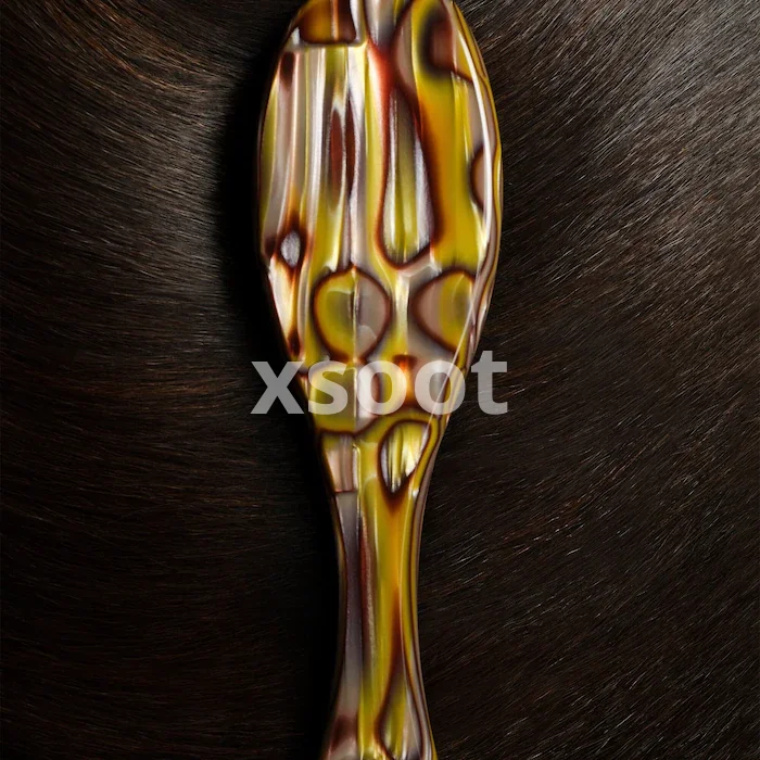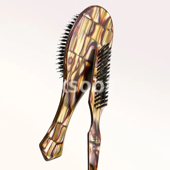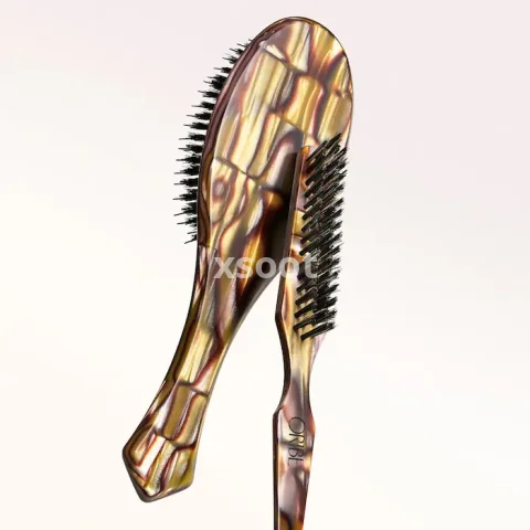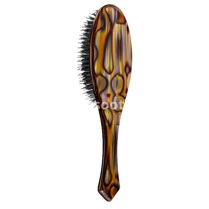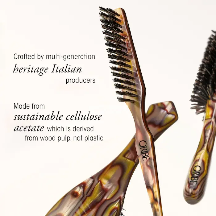 A flat brush made with custom-designed Italian resin that combines artisanal design with an ergonomic handle for a perfect grip and balanced weight.