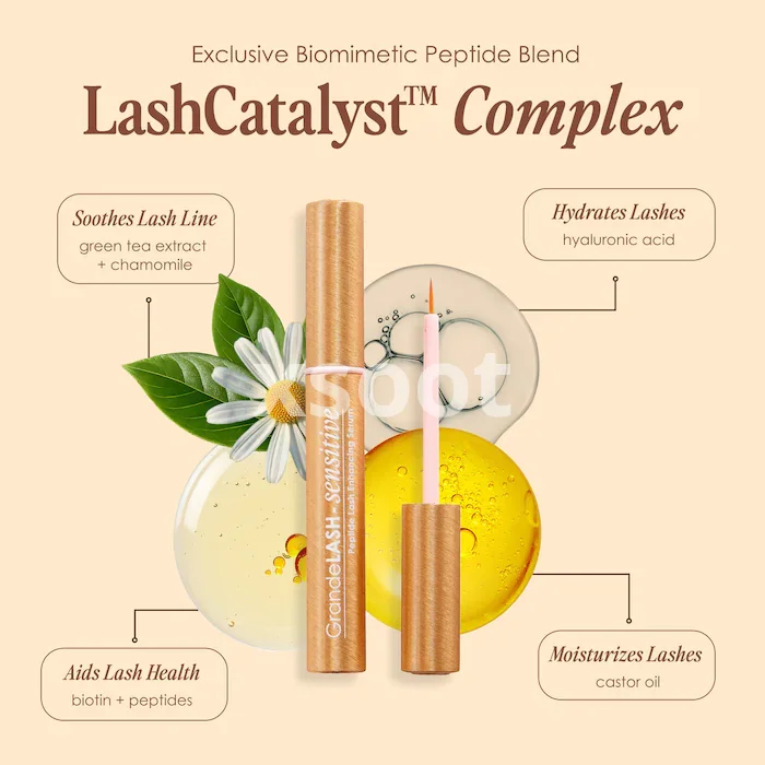 - LashCatalyst™ Peptide Complex: Research-backed peptides for thicker, longer-looking lashes.