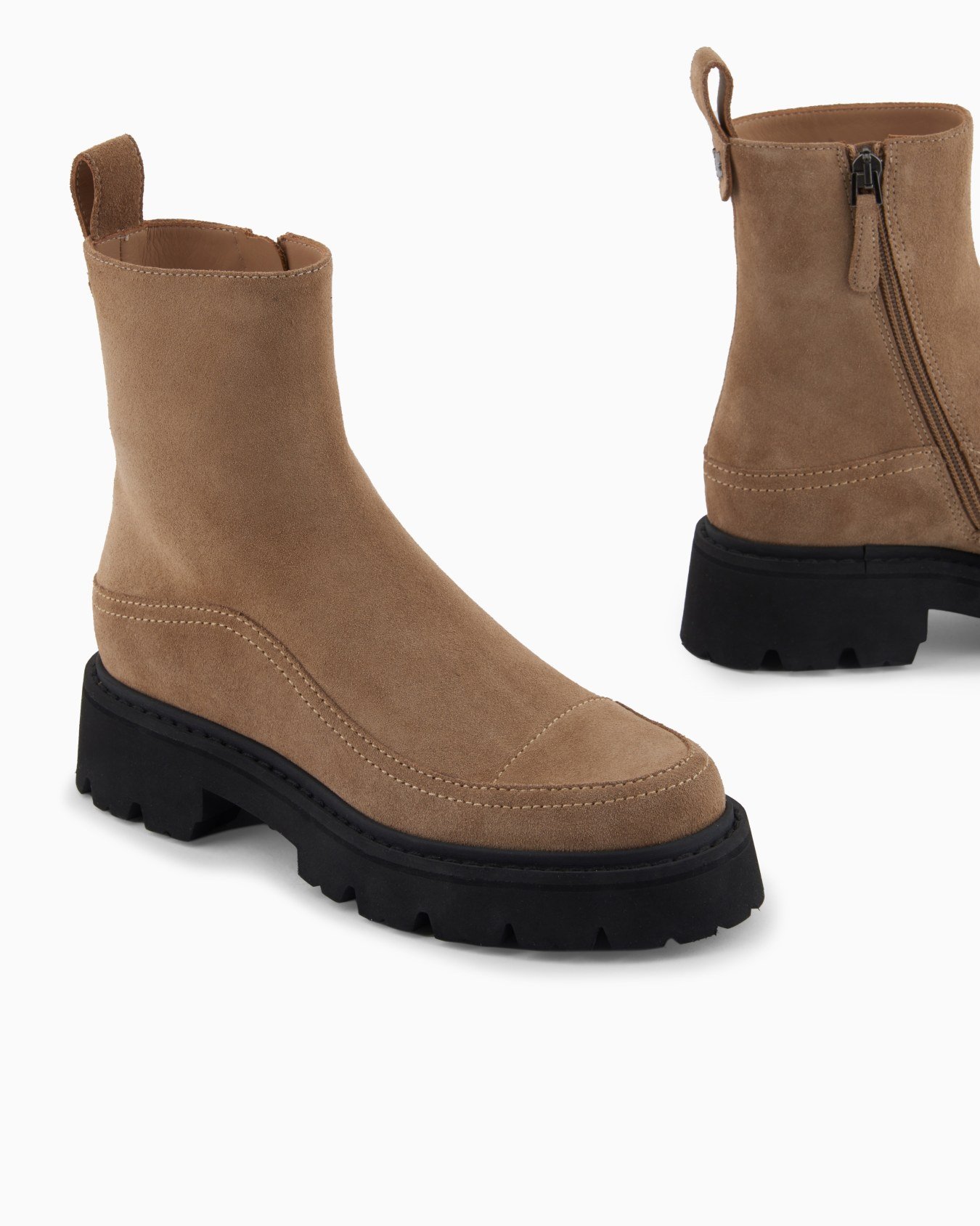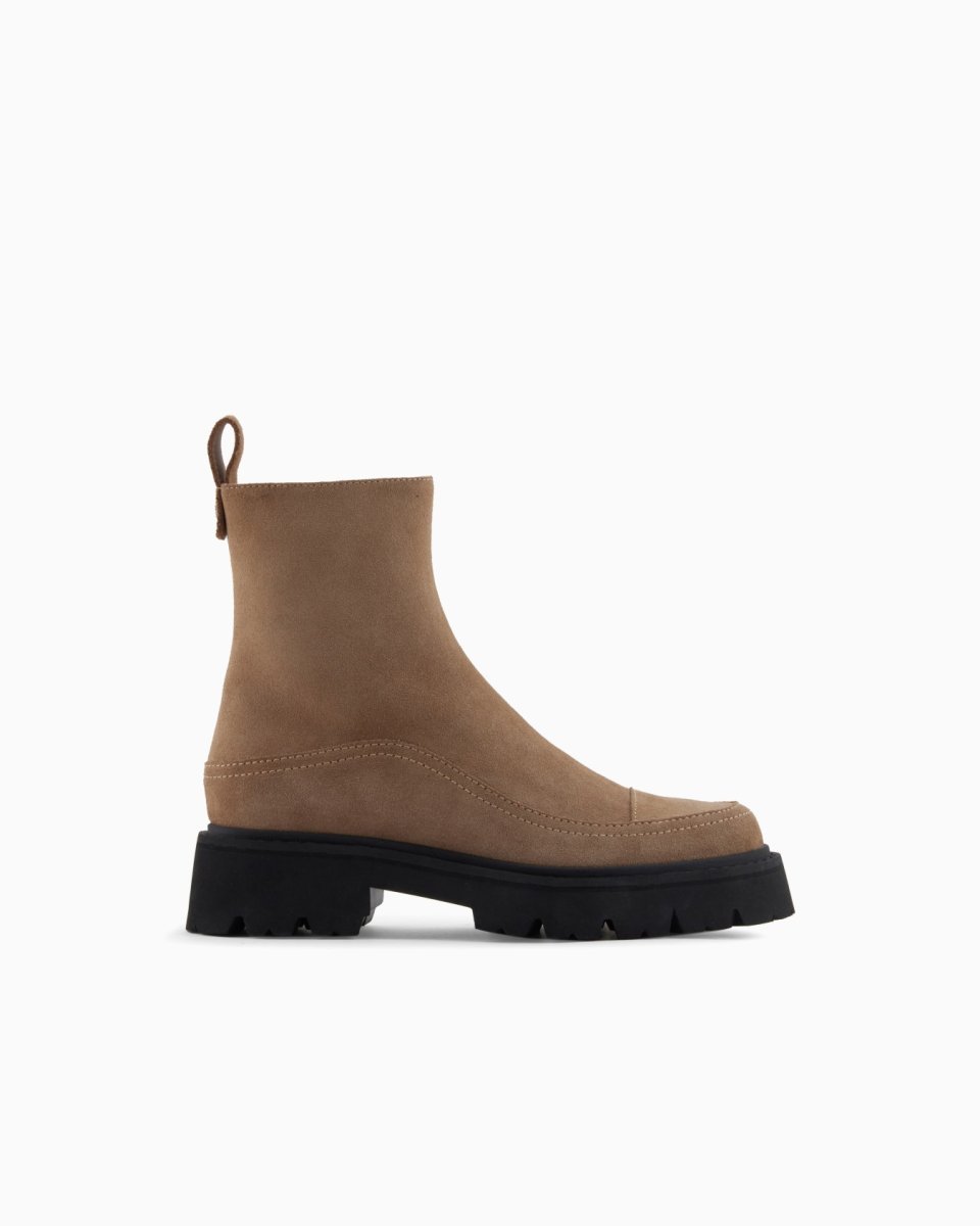 Ankle boots made of suede with a practical side zip fastening. A selection of functional, versatile footwear featuring an extremely modern design.