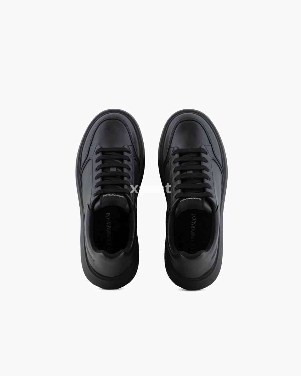 Leather sneakers with lace-up closure and contrasting side logo. This modern style is defined by daring volumes, with an oversized sole in ultra-lightweight EVA that makes the shoe exceptionally light and flexible. These sneakers move from casual moments to more elegant, formal occasions with ease.