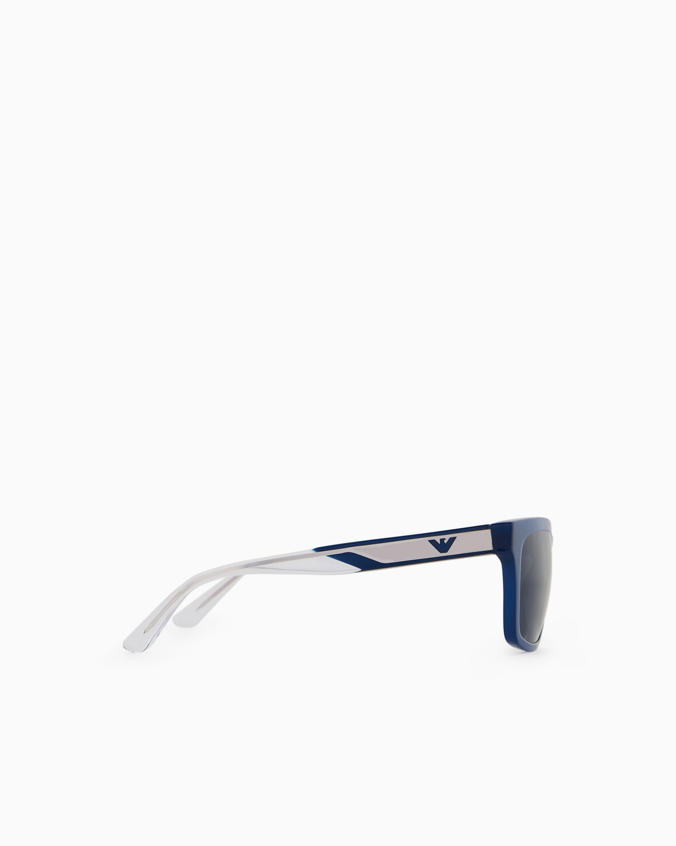 Featuring rectangle frames crafted from a more sustainable material, these men's sunglasses are defined by a play on transparency and opacity for a modern, on-trend design. The temple is enhanced with a side logo.