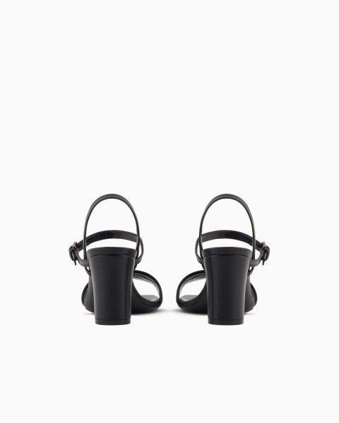 Sandals with heel, ankle strap and upper in nappa leather with a metal eagle logo. A versatile, clean-lined selection that is easy to wear.