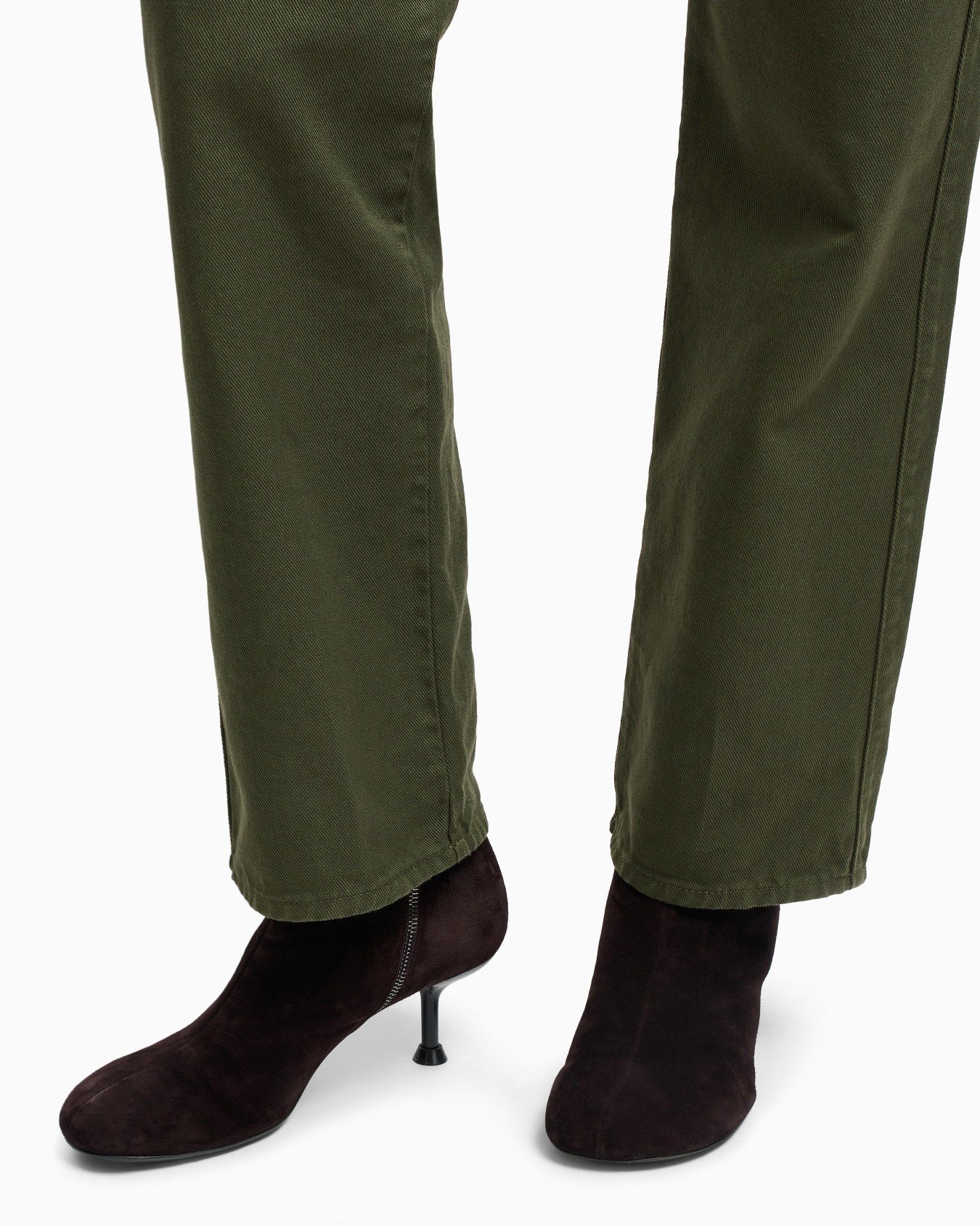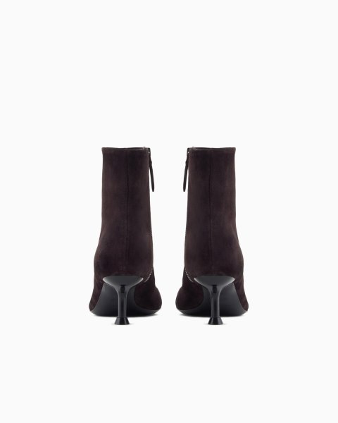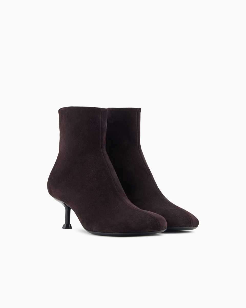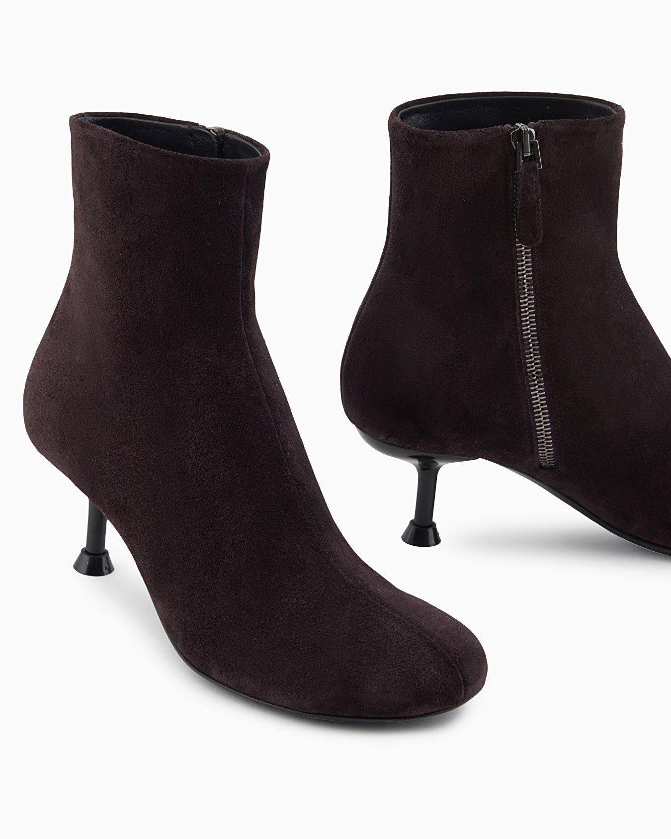 Suede ankle boots with a round toe and kitten heel. A line of footwear featuring an essential and extremely modern design. Imagine walking the hectic streets of New York, where every corner tells a story, every street has its own pace. The New York AW25 collection is inspired by this unique energy, intertwining the dynamism of the metropolis with comfort and modern street style.