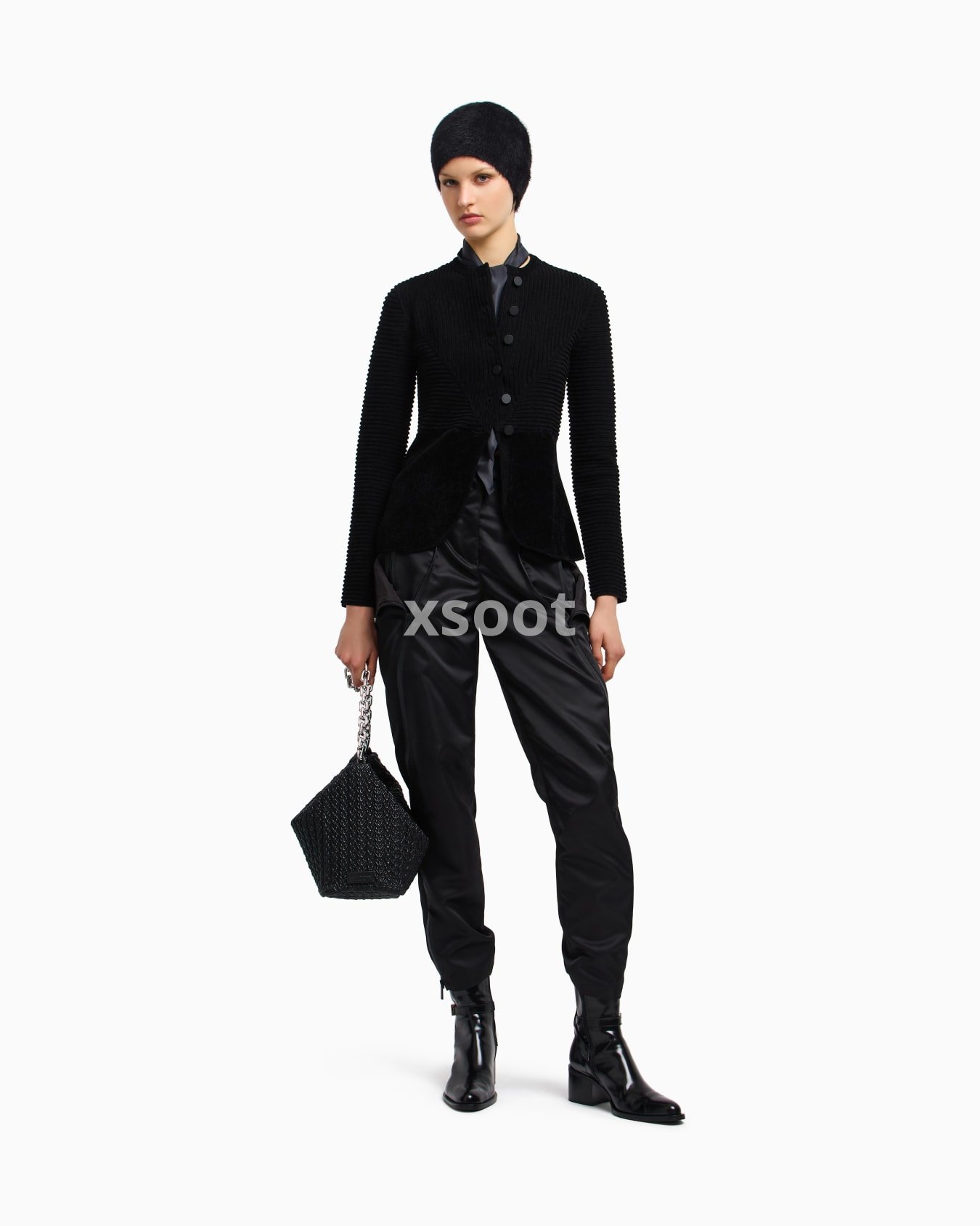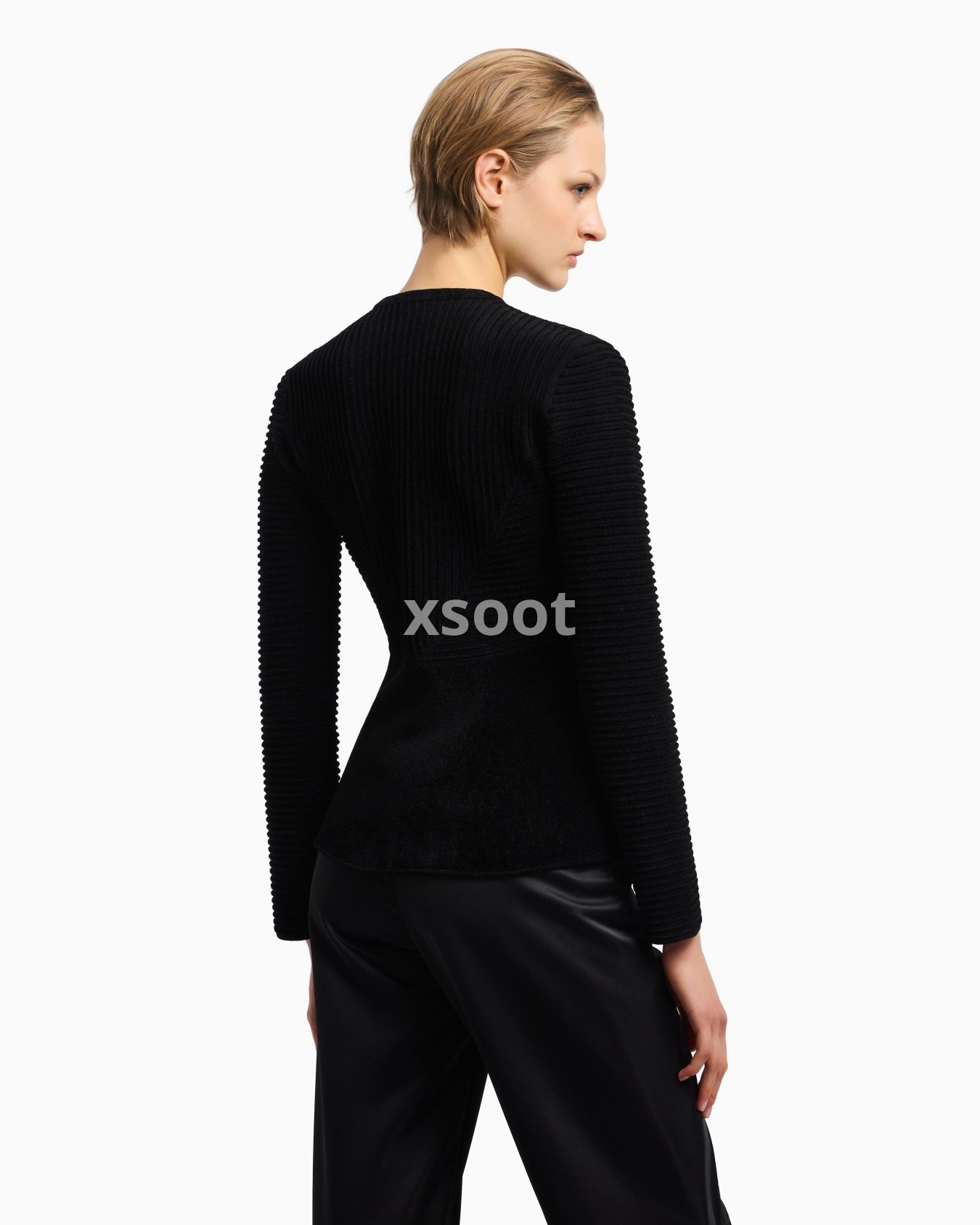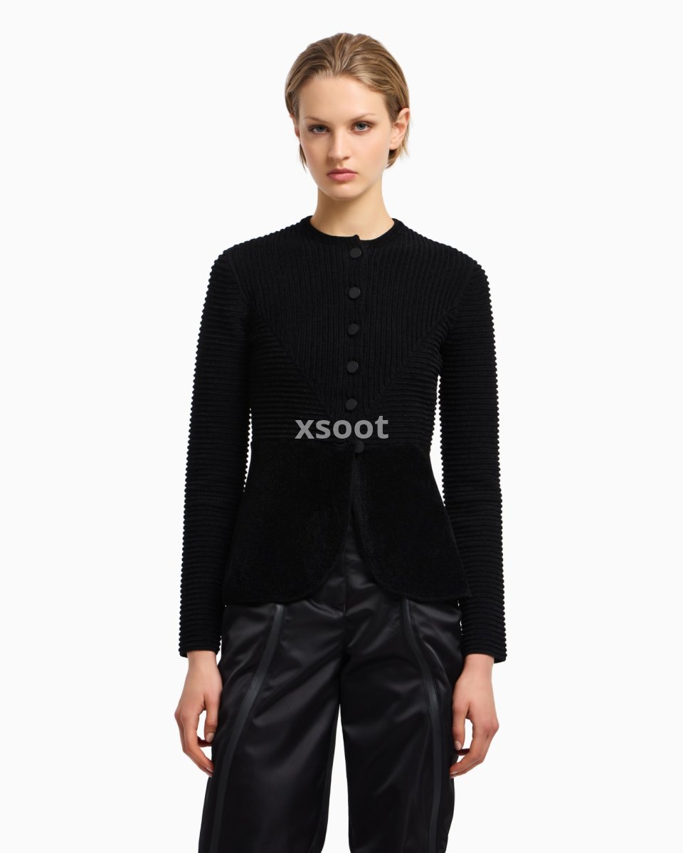 Chenille crew-neck jacket with front buttoning. The ottoman fabric, featured on the top part of the piece, creates refined all-over raised ribs, making it unique and adaptable to many outfits.