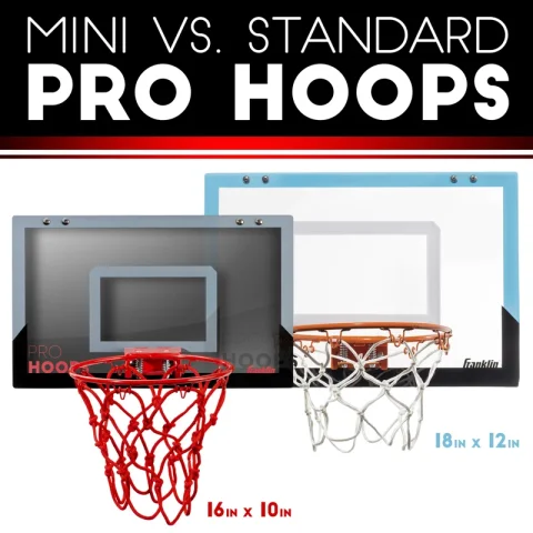 • MINI SIZE: This indoor hoop is designed with a 16" x 10" inch backboard and is slightly smaller than the other Pro Hoops sets which makes it perfect for kids and adults playing in smaller spaces