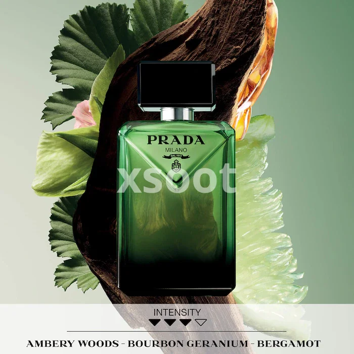 About the Bottle: This Prada men’s cologne bottle immediately invites curiosity. An architectural silhouette of radical elegance and an avant-garde statement through the tactile tilted Prada triangle. A bottle lacquered in an intense and alluring black to green gradation, the house’s iconic color.