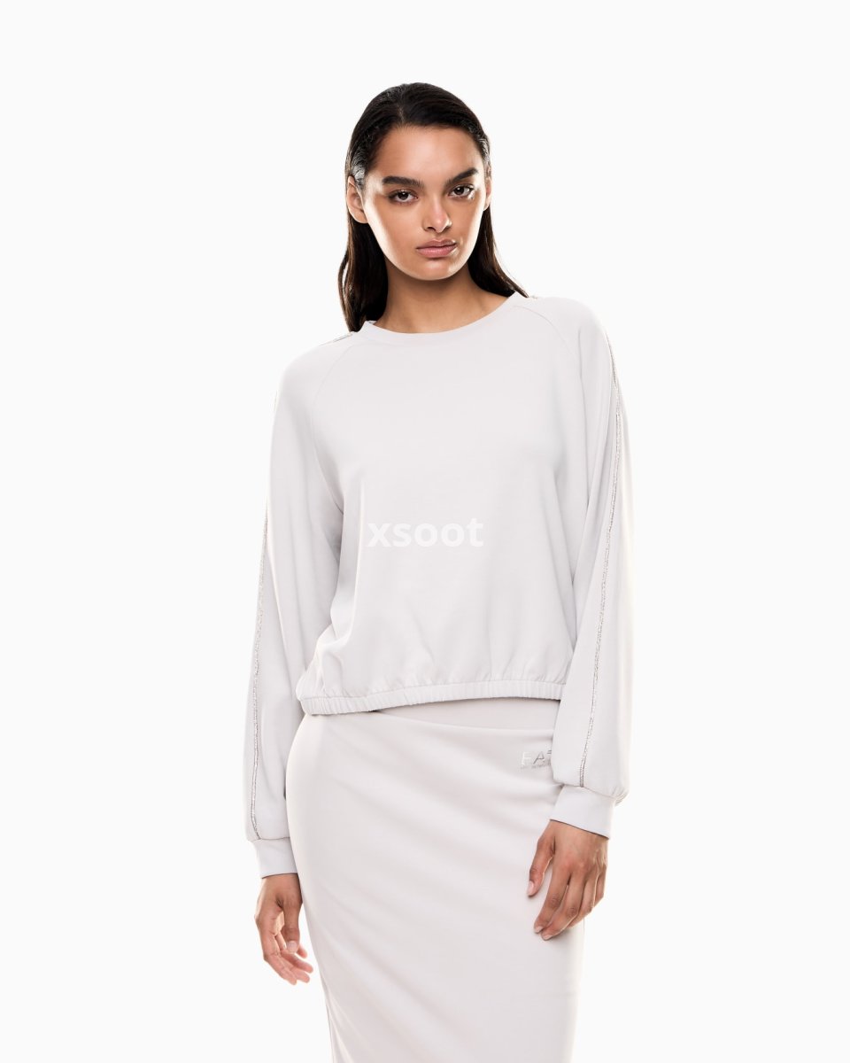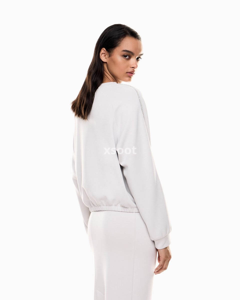 Stretch modal-blend crew-neck sweatshirt. The piece is part of the Precious collection, which combines clean lines with refined details, like the rhinestones that trim the item’s sleeves, adding a hint of sparkle. Feminine and versatile, this sweatshirt is perfect for sports and relaxation.