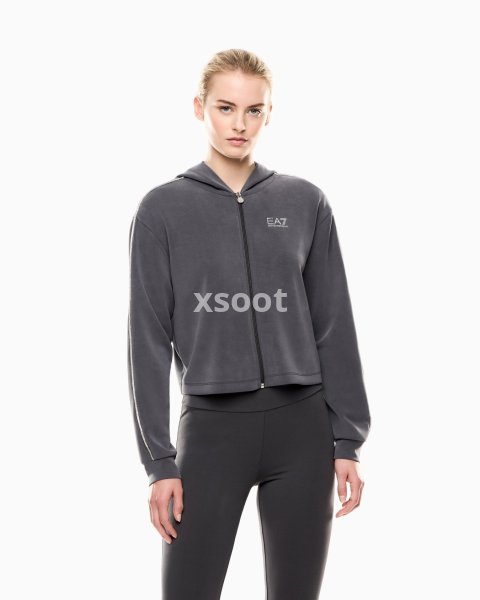 Zip-up sweatshirt in a stretch modal blend. The piece is part of the Precious collection, which combines clean lines with refined details, like the rhinestone trim on the shoulders that adds a hint of sparkle. Feminine and versatile, this sweatshirt is perfect for sports and relaxation.