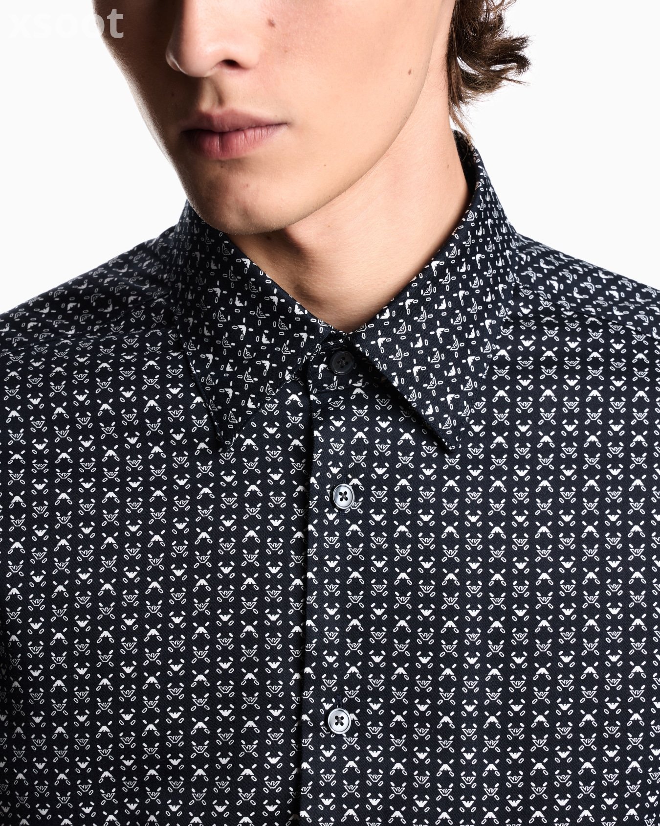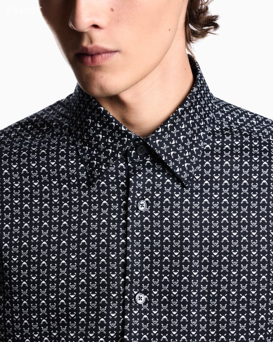 Classic-collar shirt made of stretch-cotton fabric with a dense, exclusive all-over printed decorative pattern. A style that completes seasonal looks with a fresh, modern twist.
