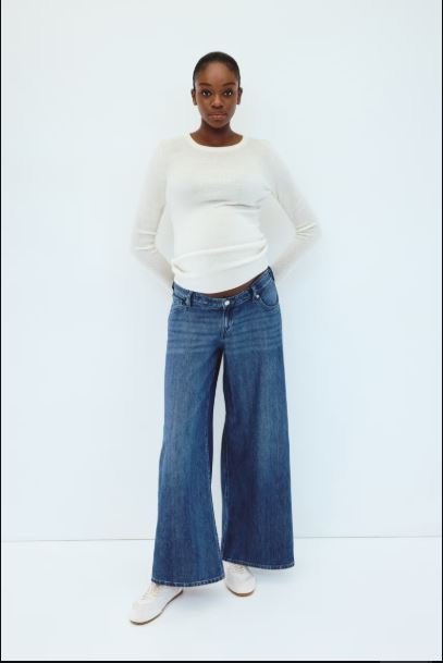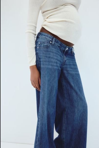 5-pocket jeans in rigid denim made from a cotton and lyocell blend that feels firm at first, softening and relaxing with wear. Regular fit from waist to hip and wide cut from thigh to hem. Low waist, zip fly with button, and concealed, adjustable elastic at waistband. Wide, regular-length legs, designed to fall at top of foot with little or no stacking. For wear during and after pregnancy.
