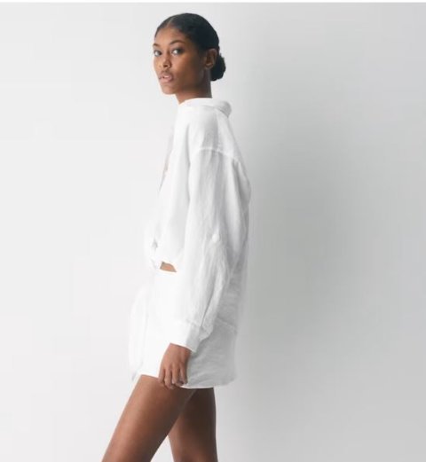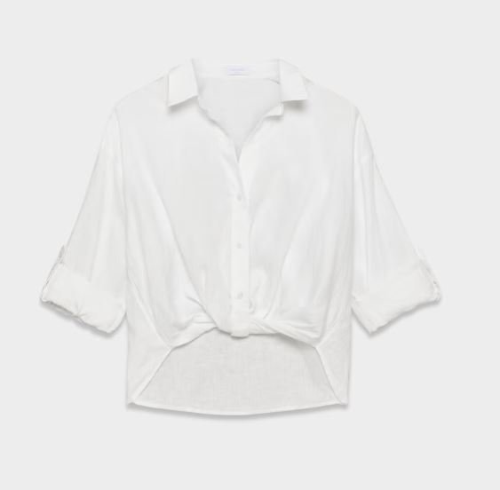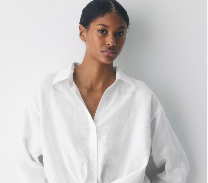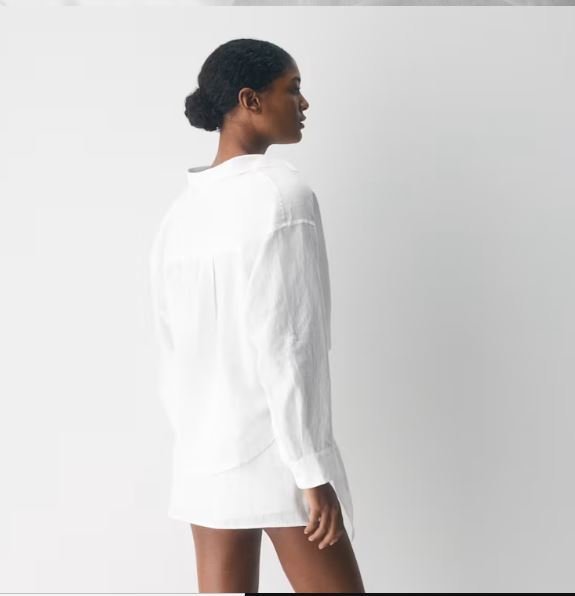 This is a button-up shirt with an adjustable sleeve tab and a faux tuck. It’s crafted from naturally breathable 100% linen with an authentic subtle texture and soft, drapey feel. The fibres are made with flax from Europe.
