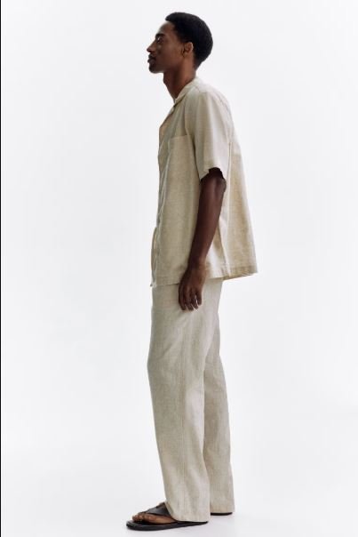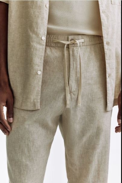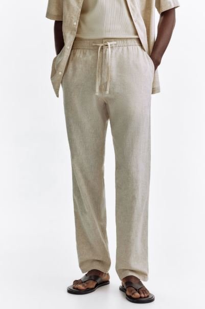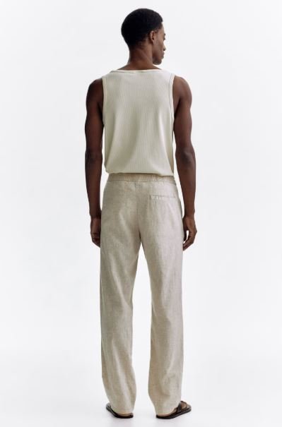 Regular-fit pants in an airy, woven cotton and linen blend with a comfortable, classic silhouette. Drawstring and covered elastic at waistband and zip fly with button. Side pockets and a welt back pocket. Cotton and linen blends combine the softness of cotton with the sturdiness of linen, creating a beautiful, textured fabric that is breathable and perfectly draped.