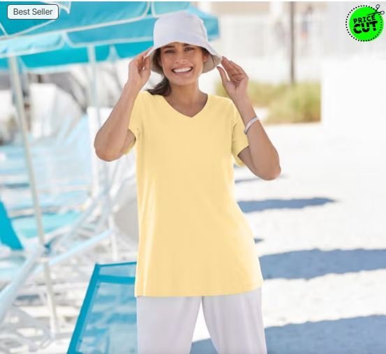 The Plus Size Woman Perfect Short-Sleeve V-Neck Tee by Woman Within is a wardrobe essential designed to provide comfort, style, and versatility for everyday wear. Crafted specifically for plus-size women, this tee combines a flattering fit with soft, breathable fabric to ensure all-day comfort. Its classic V-neckline adds a touch of elegance while creating a slimming, elongated effect on the neckline, making it perfect for casual outings, work-from-home days, or relaxed weekends.The short sleeves provide a balanced and comfortable fit, while the smooth knit construction ensures durability and long-lasting wear. Its versatile design allows for effortless styling with jeans, leggings, shorts, or skirts, creating a variety of chic and casual looks.