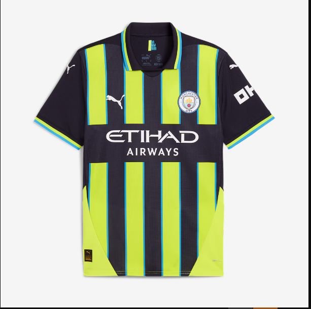 Back City as they look to smash even more records and retain their place at the top of world football with the PUMA Manchester City 24/25 Away Shirt in New Navy/Yellow Glow.