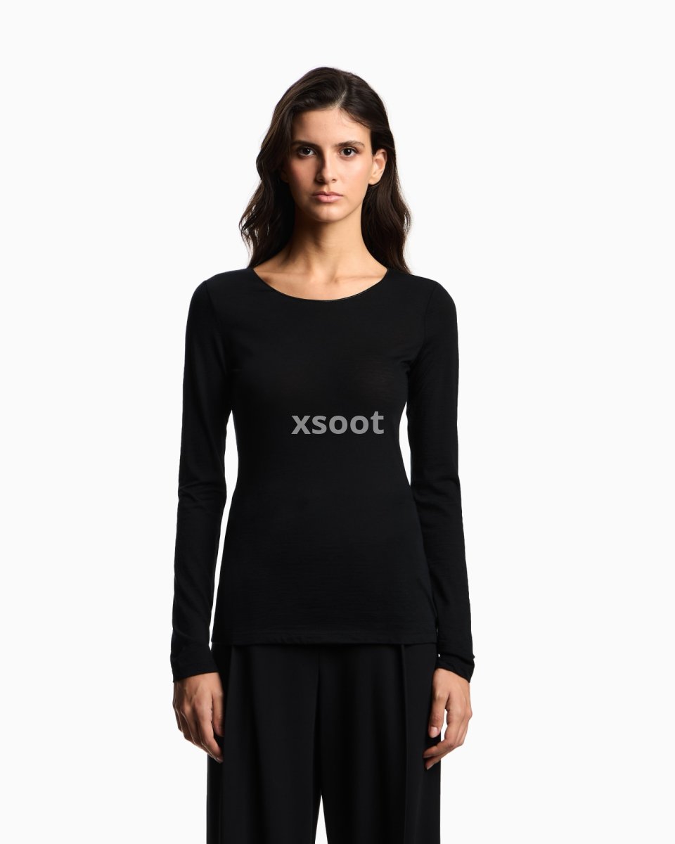 Round-neck, long-sleeved jumper made from jersey in a wool and silk blend, that is particularly snug and lightweight. A versatile, sophisticated piece for every day, inspiring a simple and comfortable wardrobe.