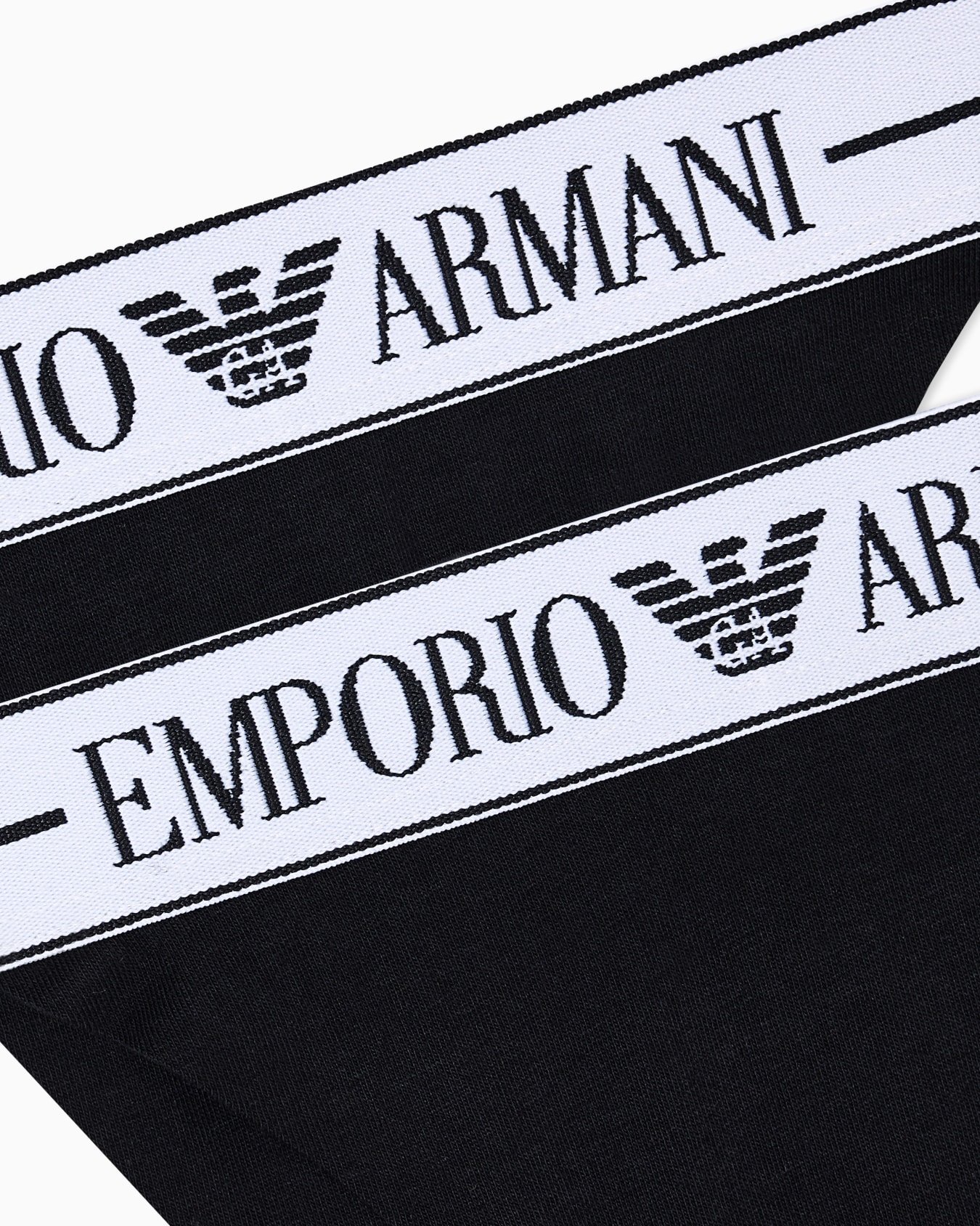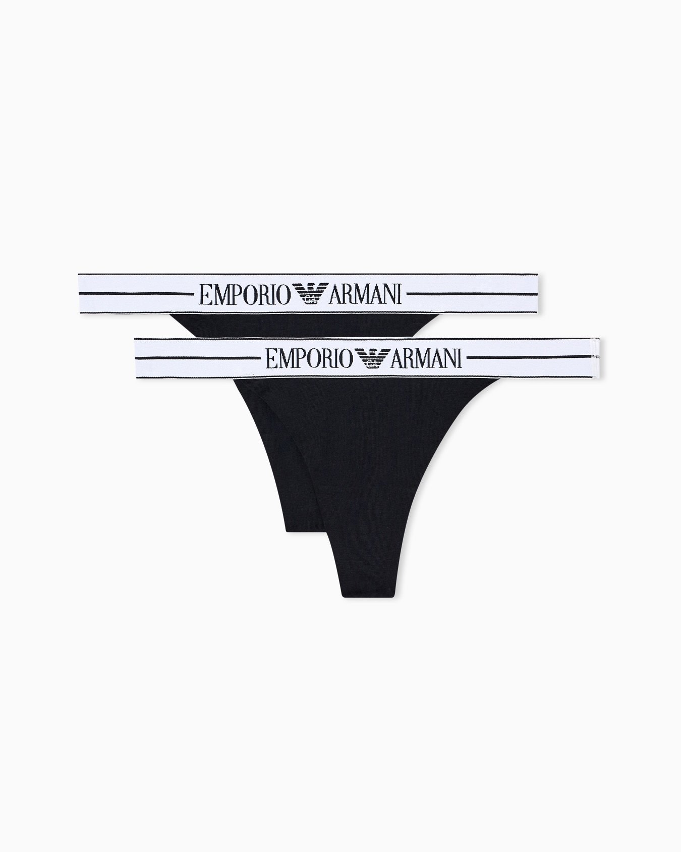 Pack containing two thongs with an elasticated logo waistband. The fabric is an organic cotton made from organically grown fibres.