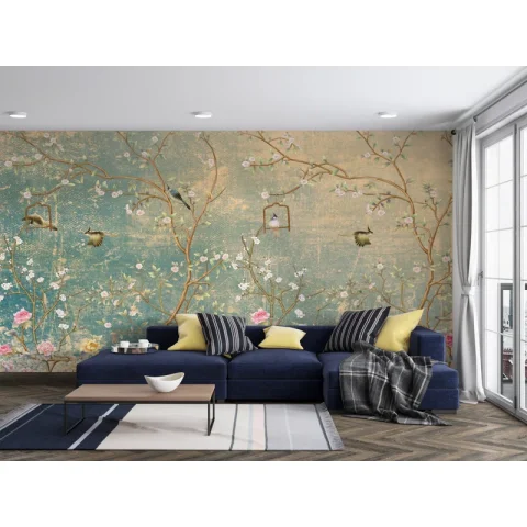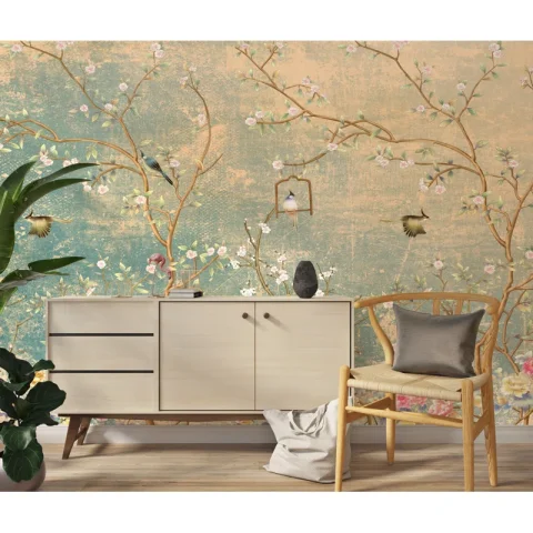 - Vintage Chinoiserie on Grunge Peel and Stick Wallpaper Mural.