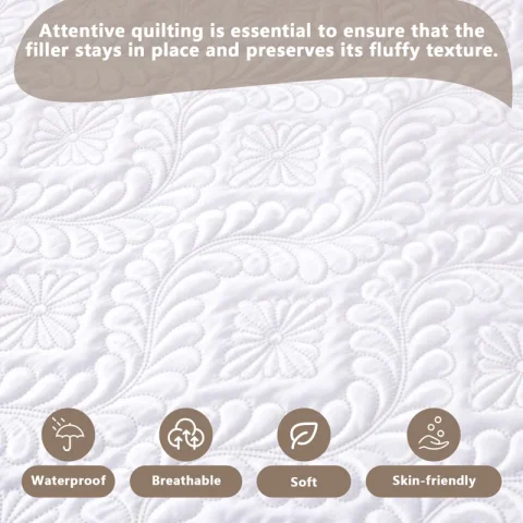 - The surface is soft brushed fabric, this quilted fitted mattress protector is filled with microfiber and has additional loft that provides extra comfortable sleep and protection.