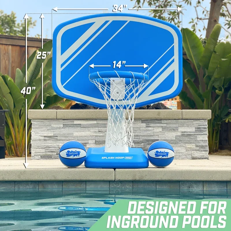 - Splash hoop pro: Slam dunk on summer pool parties with the sports splash hoop pro - includes 1 splash hoop pro, 2 inflatable water basketballs, and a ball pump for the ultimate swimming pool party game.