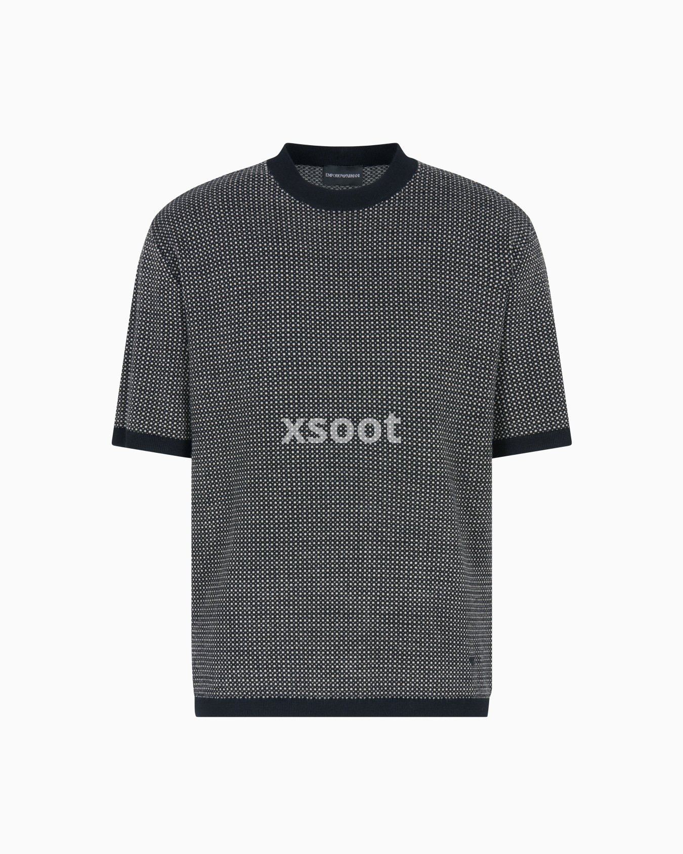 Crew-neck jumper made of pure virgin wool, featuring an all-over jacquard that creates a two-tone micro motif with an op-art effect.